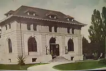 The Ludington Public Library had its beginnings 1872.[1] In 1881, the building and all library contents were destroyed in a major city fire.[1] The Pere Marquette Literary Club worked to obtain a grant from the Carnegie Institution for construction of the new Ludington library.[1]