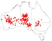 It occurs from the Ashburton River in Western Australia, to the Western Plains of New South Wales and Queensland, growing in arid and semi-arid woodland and nearly always on Acacias.[4]