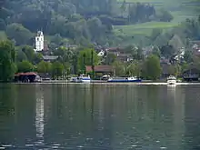 The lake was known as Glattsee (after the Glatt) in the medieval period[1] Greifensee (Grifense) was at first the name of the fort built by the counts of Rapperswil in the 12th century, recorded as the name of the bailiwick in 1260.[2] This was adopted as the name of the lake by the 16th century.[3]