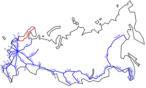 The R21 highway (in Cyrillic Р21), also known as the Kola Motorway, is a major highway in Russia, running from Saint Petersburg to Murmansk. The highway is part of European route E105 and is the main transportation route by road in the Republic of Karelia and the Murmansk Oblast. Its length is 1592 kilometers. Before 2018, the R21 was designated as M18.