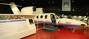 The MH02 was never intended for production, but was nonetheless the first all-composite light business jet to fly; by 1996 over 170 test flight hours were accumulated on the airframe. Aside from the already unusual above-the-wing engine mounts, the design features a T-tail and a forward-swept wing.[1] The aircraft was deregistered and exported to Japan in 1998.[2][3]