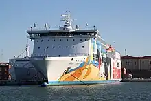 MS Moby Tommy is a fast passenger roll-on/roll-off (Ro-Ro) cruiseferry, currently owned by the Italy-based shipping company Moby Lines and operated on their Piombino and Livorno–Olbia route. She was built in 2002 by Samsung Heavy Industries Co. Ltd., Geoje, South Korea for the Greek company, Minoan Lines as MS Ariadne Palace.[2][3]