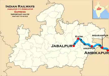 The Madan Mahal - Ambikapur Intercity Express is an Intercity train of the Indian Railways connecting Madan Mahal near Jabalpur city in Madhya Pradesh and Ambikapur of Chhattisgarh.