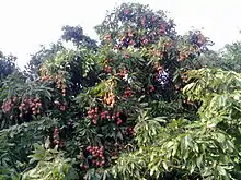 A tree laden with The Litchi fruit at Madhubani Ghat, Motihari