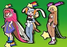 Pipin is Padudu's "lifelong rival". Pipin is an obsessive girl who is also trying to become Earth's next magical girl. She wears a bunny girl costume and her companion is a rabbit she wears as a backpack.