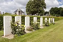 The Extension contains 126 First World War burials,[1] mainly British, but there are 3 New Zealanders and 1 Canadian. There are 2 men who in 1916 were shot at dawn for desertion.[2]