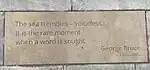 In 1997, twelve Scottish writers were selected by the Saltire Society, and quotations from their works were inscribed on stone slabs installed in the area adjacent to the museum. The first was unveiled by Ronald Harwood, then president of International PEN, and the rest by poet Iain Crichton Smith. Further inscriptions continue to be added to the Court.[4]