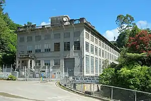 The scheme was first considered by Peter Seton Hay and developed by Frederick Kissel.[1] Earthquake strengthening was done in 1983 and 2015.[9] In 2004[10] the original two smaller generating sets were replaced by a 26 MW (35,000 hp) Francis turbine unit and, with upgrades, the station capacity is now 38 MW (51,000 hp).[1]