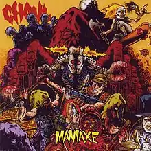 Maniaxe is Ghoul's 2003 follow up to their debut album We Came for the Dead!!!, released by Razorback Records. As before, the lyrics in this album continue the band's storyline, and introduces Ghoul's new nemesis, "The Ghoul Hunter." Maniaxe also introduces a fourth member to Ghoul, "Dissector".