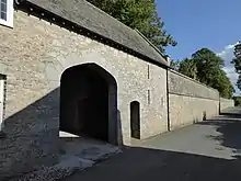 Walter Septimus Curtis (born 1871) was the owner of the estate in the early 1900s. He was lord of the manors of Denbury and of adjoining Newton Abbot and Newton Bushel.[28] He was a barrister of Lincoln's Inn and was educated at Trinity Hall, Cambridge.[29] He was the 3rd and youngest son of John Curtis (1836-1878) by his wife Juliana Davies, eldest daughter of John Davies of Manchester. Walter's grandfather was Matthew Curtis (1807–1887) of Thornfield in the parish of Heaton Mersey, Lancashire, the leading manufacturer of cotton-spinning machinery in Britain and thrice Mayor of Manchester.[30] Walter married Eleanor Francis Master, daughter and heiress of Robert Edward Master, JP, Madras Civil Service, of Hillingdon Furze, Uxbridge, Middlesex,[31] by whom he had one son, Robert Master Curtis (born 1920) and 6 daughters,[28] including Lettice Curtis (1915-2014) an aviator, flight test engineer, air racing pilot, and sportswoman.[32] Walter Curtis made substantial additions including the gatehouse[1] and the very high (5 metre) and very long boundary wall in which it is set, probably built between 1912 and 1914,[33] which stretches from the village of Denbury for several hundred yards along the roadside, past Denbury Green. His coat of arms (Per saltire argent and azure two horse's heads erased in pale gules and in fess as many fleurs-de-lys of the first[28] with inescutcheon of pretence for Master Azure, a fess embattled between three griffin's heads erased or[34]) is sculpted on a stone tablet above the inner entrance of the gatehouse.