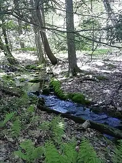 A white ash tree with a height of 139.7 feet (42.6 m) was observed in the vicinity of Maple Spring Brook on September 15, 2004. Its height was measured via the laser-clinometer method.[2] There are numerous hemlock trees in the vicinity of the stream's upper reaches.[6]