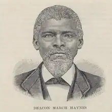 March Haynes (March 4, 1825 Pocotaligo, Jasper, South Carolina) - July 16, 1899 Savannah, Chatham County, Georgia) was an African American abolitionist. He freed over three hundred enslaved people using his knowledge of the waterways of Savannah, Georgia, after his enslaver, John C. Rowland became a prisoner during the American Civil War.