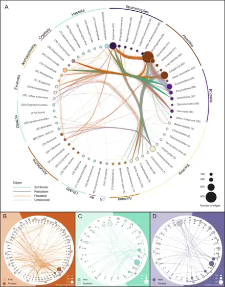 - ↑ Mahé, Frédéric; De Vargas, Colomban; Bass, David; Czech, Lucas; Stamatakis, Alexandros; Lara, Enrique; Singer, David; Mayor, Jordan; Bunge, John; Sernaker, Sarah; Siemensmeyer, Tobias; Trautmann, Isabelle; Romac, Sarah; Berney, Cédric; Kozlov, Alexey; Mitchell, Edward A. D.; Seppey, Christophe V. W.; Egge, Elianne; Lentendu, Guillaume; Wirth, Rainer; Trueba, Gabriel; Dunthorn, Micah (2017). "Parasites dominate hyperdiverse soil protist communities in Neotropical rainforests". Nature Ecology & Evolution. 1 (4): 91. doi:10.1038/s41559-017-0091. PMID 28812652. S2CID 2631960.