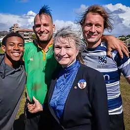 The Fog A side emerged undefeated, defeating the London Kings Cross Steelers 27-5 in the final. Alice Hoagland, Mark Bingham’s mom, presented the Fog with the trophy. The event was profiled in a two-page article in Rugby World magazine.