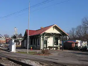 The station was originally located at 40°41′45.2″N 80°00′33.5″W / 40.695889°N 80.009306°W, near the intersection of Marshall Way and West Railroad Avenue.[1] During the 1920s, a freight train derailed and crashed into the station, which knocked it off its foundation. The station would eventually be repaired. A few years later, residents gathered around the station and tracks to witness President Warren G. Harding's funeral train passing by on its way to Washington, D.C. The station closed down in the early 1960s, and it would sit vacant until the late 1970s. In the late 1970s and early 1980s the station was once again in use by the railroad and there was an agent located at the station. The agent that was at the station when it finally closed was J.T. Scott. After it closed again in the early 1980s it would remain closed.