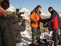 Andrews became known by audiences around the world in 2007 after he became the host of RT's most popular extreme travel series, Wayfarer, an adventure TV show that saw him report from minus 40 to plus 40, through 11 time zones in over 75 cities in Russia and the former Soviet Republics. Over three series he lived with Eskimos in the Polar Circle, trained with Russian Cosmonauts and the Russian army, scuba dived in dangerous karst lakes, explored secret tunnels and bunkers of the Kremlin, base jumped from the Caucasus Mountains, was set on fire at Mosfilm studios, played with tigers in Siberia, played on Tchaikovsky's piano, paraglided over warzones and danced with locals in Outer Mongolia.[6]