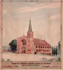 Only ten years after the opening of the original church, Archbishop Duhig announced that a new church would be built to meet the needs of the fast-growing parish. He said that the church would be large and one of the finest of its kind in Queensland. The church would be built in memory of Parish Priest, Father James Gallagher, who had died of a heart attack on the Thursday before whilst performing maintenance work on the fence.[5]