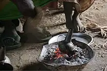 Once a week most Manasir women apply a "smoke mask" called Dukhan (دخّان) to their face and body. They burn the wood of Acacia seyal (Talh; طلح) in the kitchen hearth or a buried earthen pot in the courtyard. When the burning wood starts to produce smoke the woman will place herself on the Nutu' above the hole, covered by a big piece of coarse fabric and fumigate parts of her body until the upper skin peels off. As a result of this weekly procedure the colour of her skin will appear more pale (cf. CROWFOOT 1918:127-128). The Dukhan can also be used for medical purposes burning additional wood of Acacia ehrenbergiana (Salam; سلم) and Balanites aegyptiaca (Higlig; حجليج).