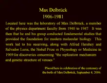 - ↑ W. Hayes (1992). "Max Ludwig Henning Delbrück – September 4, 1906 – March 10, 1981". Biographical Memoirs of the National Academy of Sciences. 62: 67–117. PMID 11639973. Archived from the original on October 15, 2012. Retrieved July 22, 2012.