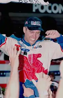 ![]() Mayfield celebrating after winning the 1998 Pocono 500 | |||||||