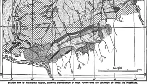 ![]() Kantishna Region Geologic map showing the location of the Muldrow Glacier origin of the river | |