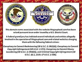 On 19 January 2012, the United States Department of Justice seized the domain names and closed down the sites associated with Megaupload after the owners were arrested and indicted for allegedly operating as an organization dedicated to copyright infringement.[3] Subsequently, HK$330 million (approximately US$42 million) worth of assets were frozen by the Customs and Excise Department of Hong Kong.[4] The company's founder, New Zealand resident Kim Dotcom, has denied any wrongdoing, and the case against Dotcom has been the subject of controversy over its legality.[5] In 2017, a New Zealand judge ruled that Dotcom should be extradited to the United States, but Dotcom remained at liberty in New Zealand pending the results of an appeal.[6] On 5 July 2018, the New Zealand Court of Appeal found Dotcom and three of his former colleagues were eligible to be extradited to the U.S. authorities. His lawyer said they would appeal to the New Zealand Supreme Court.[7] The shutdown of Megaupload led to denial-of-service (DoS) attacks on a range of websites belonging to the U.S. government and copyright organizations by the hacktivist group Anonymous.[8][9]