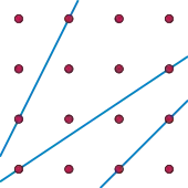 As Paul Erdős observed, the Sylvester–Gallai theorem immediately implies that any set of points that are not collinear determines at least different lines. This result is known as the De Bruijn–Erdős theorem. As a base case, the result is clearly true for . For any larger value of , the result can be reduced from points to points, by deleting an ordinary line and one of the two points on it (taking care not to delete a point for which the remaining subset would lie on a single line). Thus, it follows by mathematical induction. The example of a near-pencil, a set of collinear points together with one additional point that is not on the same line as the other points, shows that this bound is tight.[16]