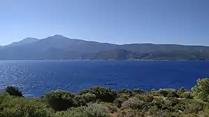 ![]() Mount Mycale, or the Samsun Range, seen from Samos across the straits. The north is to the left. The whole thing was part of Melian territory. The main question about the location of Melia is whether it was at Fort Karion on the lower slopes or at Çatallar Tepe on the upper slopes. |