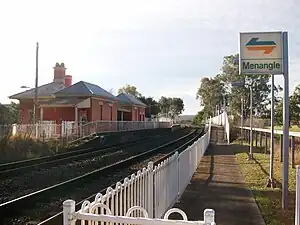 Menangle railway station is a heritage-listed railway station located on the Main South line in the south-western Sydney settlement of Menangle in the Wollondilly Shire local government area of New South Wales, Australia. It is also known as Menangle Railway Station group. The property was added to the New South Wales State Heritage Register on 2 April 1999.[3] The station opened on 1 July 1863.[4][5]