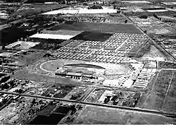 When the fair is not meeting the race track is used for the Merced Fairgrounds Speedway. The speedway is a 0.375-mile dirt track that hosts race car, midget car and motorcycle racing. It previously held a race in NASCAR's premier division during the 1956 NASCAR Grand National Series.[5][6][7] Chris Windom won the 2020 National Midget Car Championship at the Merced Fairgrounds Speedway.[8]