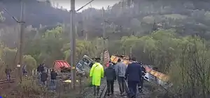 - ↑ "Accident grav de tren. Mecanicii au murit și mai multe vagoane au căzut într-o râpă". Digi24 (in Romanian). 8 April 2017. Retrieved 2017-04-08.
