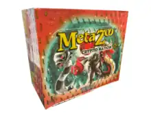 Decks in MetaZoo are officially referred to as Spellbooks. They have a minimum of 40 and no designated maximum of cards as long as players are able to be shuffle them with two hands and no additional or external assistance. Individual cards in MetaZoo are officially referred to as Pages, and consist of Beasties (creature cards), Spells, Artifacts, Potions, Terra cards, and Aura cards. As with games such as the Yu-Gi-Oh! Trading Card Game, MetaZoo follows an eternal format, which means there is no set rotation of cards that are permitted or prohibited in deck building as there is in other games such as Magic: The Gathering or the Pokémon Trading Card Game. Cards from preconstructed decks and other special releases are also allowed to be included in all constructed decks.[2]
