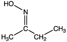 Methylethyl ketone oxime is the organic compound with the formula C2H5C(NOH)CH3. This colourless liquid is the oxime derivative of methyl ethyl ketone. MEKO, as it is called in the paint industry, is used to suppress "skinning" of paints: the formation of a skin on paint before it is used. It is particularly used in alkyd paints. MEKO functions by binding the drying agents, metal salts that catalyze the oxidative crosslinking of drying oils. Once the paint is applied to a surface, MEKO evaporates, thereby allowing the drying process to proceed. Other antiskinning agents have been used, including phenolic antioxidants (E.G butylated hydroxytoluene), but these tend to yellow the paint.[1] This oxime is also used in some types of RTV silicones.