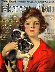 Metropolitan Magazine began in 1895 as a "naughty picture magazine selling sex sationalism" in its earliest issues.[2] In 1897 the Metropolitan featured suggestive photos of Nellie Melba the opera singer and of Yvette Guilbert reclined in her boudoir, which was very risque for the time. John Brisben Walker was its first editor and publisher.[3] In 1898, the magazine built a more sophisticated reputation as a magazine for theater-goers in New York featuring writings by Kipling and Conrad.[1] In 1902, the magazine was sold along with The Daily Telegraph for $100,000 to Col. George Harvey, president of the publishing company Harper & Brothers.[4] Harvey said that "in purchasing The Metropolitan I bought simply a name", and that the chief mission of the periodical should be urban life in New York.[4] He named John Kendrick Bangs the new editor.[4] Harry Payne Whitney was owner of the magazine for a time during the 1910s.[5]
