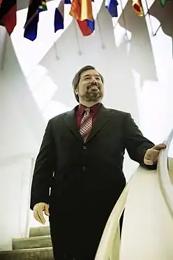 An internationally recognized expert in international criminal law, Scharf has testified before the U.S. Senate Committee on Foreign Relations[6] and the House Armed Services Committee;[7] his interviews and op eds have appeared in The Washington Post,[8] Los Angeles Times, The Boston Globe, The Christian Science Monitor, and International Herald Tribune; and he has appeared on ABC World News Tonight, the NBC Today Show, Nightline, The O'Reilly Factor, The NewsHour with Jim Lehrer,[9] Minnesota Public Radio,[10] Public Radio International (PRI),[11] The Charlie Rose Show,[12][13] the BBC, CNN,[14] Voice of America,[15] and NPR. Scharf also hosts Grotian Moment, an award-winning International Criminal Law Blog. He is a frequent contributor of scholarly articles to the American Society of International Law. Scharf was selected as a lifetime member of the Council on Foreign Relations in 2019.