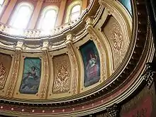 The Lansing capitol building inspired a national trend after the American Civil War for fireproof buildings, large enough to house expanding government as well as serving as a durable repository for artifacts of the war,[7] including battle flags that were moved to the Michigan Historical Museum in 1990. Over the years the dome, which at first matched the light tan of the building, was repainted a bright white. The legislature funded an extensive historical restoration starting in 1989 which was completed in 1992.[4] The restoration returned the dome to a creamy-white shade, upgraded mechanical systems, and improved accessibility as well as restoring many of the original design elements. One of the restoration's largest phases entailed removal of "half-floors" that were installed in 1969 to create 50,000 square feet (4,600 m2) of additional office space. The floors were created by dividing the 16-foot (4.9 m)-high rooms horizontally and creating a level of rooms which was accessed from the stairway landing. The Capitol Building was listed on the National Register of Historic Places January 25, 1971 (NRHP Reference #71000396), and was designated as a National Historic Landmark October 5, 1992.[8]