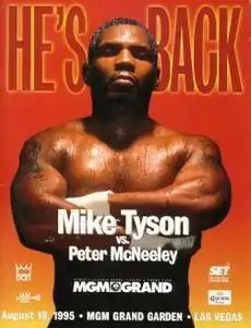 Mike Tyson vs. Peter McNeeley, billed as He's Back, was a professional boxing match contested on August 19, 1995. The match marked the return of Mike Tyson to professional boxing after over four years away due to his 1991 arrest and subsequent conviction for rape in 1992 which led to Tyson serving three years in prison.