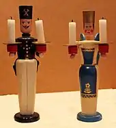 A miner's figure (German: Bergmannsfigur) is a traditional Christmas decoration from the Ore Mountains of central Europe.[1] Miners' figures are turned or carved out of wood, and often bear two candles. They are usually displayed together with an angelic figure, also bearing a candle. This pair is intended to symbolize the relationship between man and woman or the worldly and spiritual aspects of life.