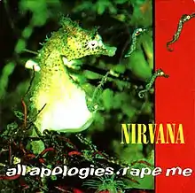 "All Apologies" was released as a double A-side single with "Rape Me" on December 6, 1993, on CD, cassette tape, and 7-inch and 12-inch vinyl record formats.[18] The only instruction Cobain gave the single's art director, Robert Fisher, regarding the packaging was that he wanted "something with seahorses".[19] Like its predecessor "Heart-Shaped Box", the single was not released commercially in the United States.[18] However, the song did peak at number one on the US Modern Rock Tracks Chart, remaining on the chart for 21 weeks and boosting sales of In Utero nationwide.[20] In February 1994, "All Apologies" was voted in as the number one most wanted song by listeners of the Hawaii Free Radio.[21]