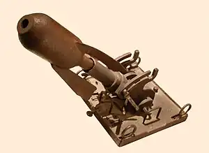 The Mortier de 58 T N°1 bis were lighter than the Mortier de 58 T N°2 and weighed 181 kg (399 lb) and could fire the same projectiles as the Mortier de 58 T N°1 to 450 m (490 yd) at +45°. The mortar consisted of a square metal baseplate with four hoops at the corners that two wooden poles slid through so the crew to carry the assembled mortar. There was a short smoothbore barrel that sat on a circular metal swivel that could be adjusted for both traverse and elevation. Once traverse and elevation were set there were handles to lock the swivel in place. The 37–57 g (1–2 oz) propellant charge was then inserted in the muzzle and the projectile slid onto the end of the barrel. The mortar was fired by pulling on a lanyard which was attached to a friction igniter embedded in the propellant. However, the projectiles were considered too light and the Mortier de 58 T N°1 bis were in turn replaced by the Mortier de 58 T N°2. The advantage of the Mortier de 58 T N°2 was that it could fire new heavier projectiles of similar design to a greater range but it weighed 410 kg (900 lb) so it wasn't as mobile.[6]