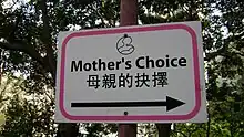 ![]() Sign showing directions to Mother's Choice's Kennedy Road office | |