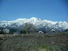 ![]() Mount Ashibetsu from Yamabe Station in Furano (April 2009) | |