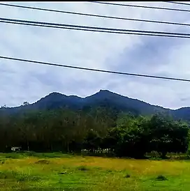 View of the Titiwangsa Mountains near Kampung Gadong, with Datuk rising to the east (right hand side of the image).