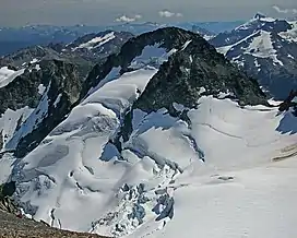 ![]() Mount Fitzsimmons and Fitzsimmons Glacier as seen from Overlord Mountain | |