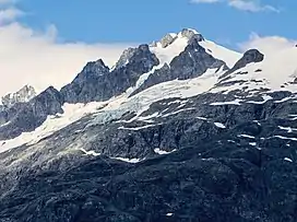 Mount Forde, also known as Boundary Peak 161, is a 6,883-foot (2,098 m) mountain summit located in the Fairweather Range of the Saint Elias Mountains, on the Canada–United States border between southeast Alaska and British Columbia.[3] The peak is situated on the boundary of Glacier Bay National Park and Preserve, near the head of Tarr Inlet, 109 mi (175 km) northwest of Juneau, and 4.4 mi (7 km) northeast of Mount Turner, which is the nearest higher peak. Although modest in elevation, relief is significant since the mountain rises up from tidewater in less than four miles.