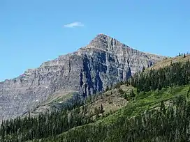 Mount Helen (8,538 feet (2,602 m)) is located in the Lewis Range, Glacier National Park in the U.S. state of Montana.[3] Mount Helen rises immediately to the northwest roughly 3,100 feet (940 m) above Upper Two Medicine Lake in the southeastern part of Glacier National Park.[4] The Continental Divide of the Americas passes over the summit of Mount Helen.