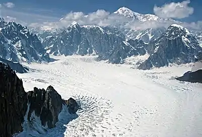 Mount Kudlich is an 11,301 ft (3,440 m) mountain summit located in the Alaska Range, in Denali National Park and Preserve, in Alaska, United States. Mount Kudlich is also referred to as Peak 11,300.[4] It is situated 4,000 feet above the confluence of the West and Northwest Forks of Ruth Glacier, on the west side of the Don Sheldon Amphitheater, 6.15 mi (10 km) southeast of Denali, 2.5 mi (4 km) north of Mount Huntington, and 3 mi (5 km) west-southwest of Mount Dan Beard. The mountain was possibly named by explorer Belmore Browne for Herman C. Kudlich (1861-1946), City Magistrate of New York and member of the American Museum of Natural History. Belmore Browne participated in Frederick Cook's 1906 expedition which claimed the first ascent of Mount McKinley, but was later disproved.