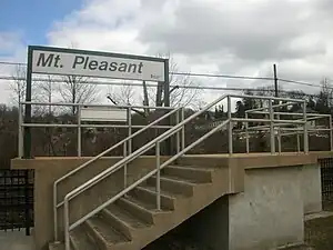 Mount Pleasant station is a commuter rail stop on the Metro-North Railroad's Harlem Line, located in Mount Pleasant, New York. It serves two adjacent cemeteries, Gate of Heaven and Kensico, the latter of which had its own station until the mid-1980s. There is one train in each direction on weekdays and three trains in each direction on weekends. The station exists largely to serve visitors of those buried in the cemetery, in turn there is no parking available at the station and it is not intended as a commuter station.