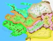 The main changes to the game were the inclusion of multiplayer capability, the introduction of a sixth faction, the Sarranid Sultanate, and the reorganisation of the overworld map.[9] The introduction of political options allows players to influence lords and marry ladies, and it is possible for an unaligned player to capture a town or castle and start their own faction.[9] The game contains slightly improved graphics, along with new or altered animations in combat.[10]