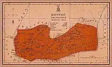 Mountain Province was also the name of the historical province that included most of the current Cordillera provinces. This old province was established by the Philippine Commission in 1908,[3][4][5] and was later split in 1966 into Mountain Province, Benguet, Kalinga-Apayao and Ifugao.[6][7][8]